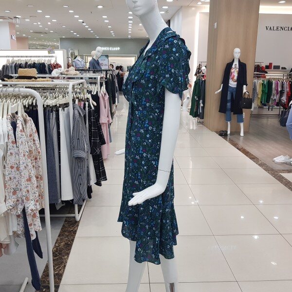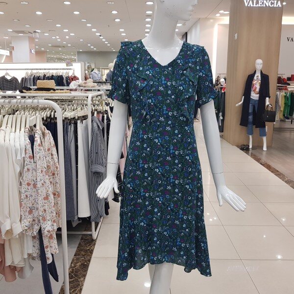 앞판 러플장식.밑단 언발 실루엣이 여성스러운 플러럴쉬폰원피스