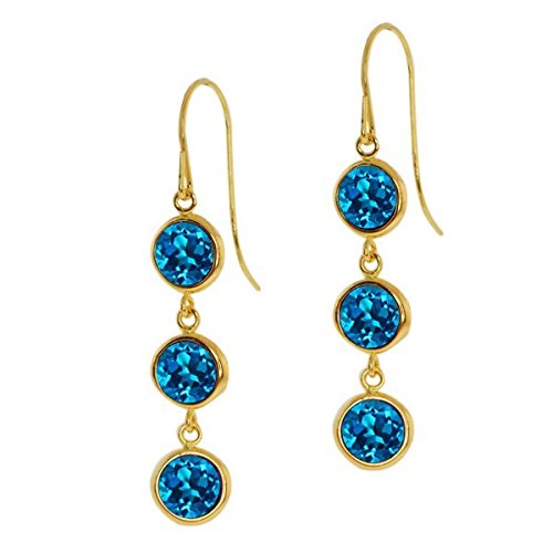 -. Binding : Jewelry -. Brand : Gem Stone King -. Color : London Blue -. Department : womens -. Feature : 3.3 Ct / 14K Yellow Gold / 100% Satisfaction Guaranteed / This item is proudly custom made in the USA / Gemstones may have been treated to improve their appearance or durability and may require special care. -. Model : WRC-0128-RD-T-LBL-YG14K -. MPN : WRC-0128-RD-T-LBL-YG14K -. NumberOfItems : 1 -. PackageQuantity : 1 -. PartNumber : WRC-0128-RD-T-LBL-YG14K -. ProductGroup : Jewelry -. ProductTypeName : FINEEARRING -. Title : 3.3 Ct 3 Round London Blue Topaz Stones 14K Yellow Gold Bezel 1" Dangle Earrings