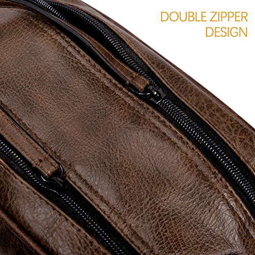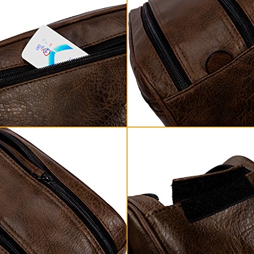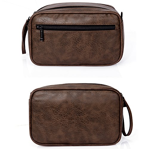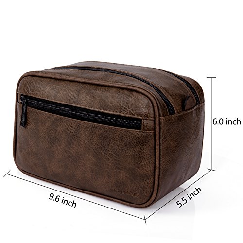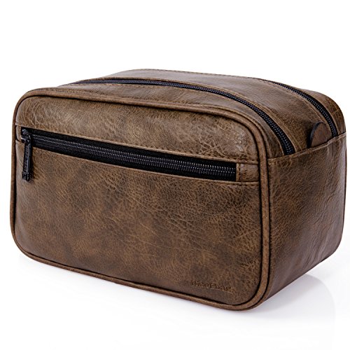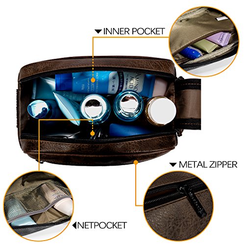 NiceEbag Leather Toiletry Bag Waterproof Travel Toiletry Organizer Portable Hanging Makeup Bag Dopp Kit & Shaving Cosmetic Bag for Men Women (Brown)