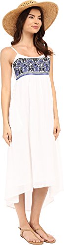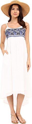 Product DescriptionWoven empire waist dress, embroidered front bodice, dobby skirt with hi-low hemline, adjustable back tie, lined at skirt.0