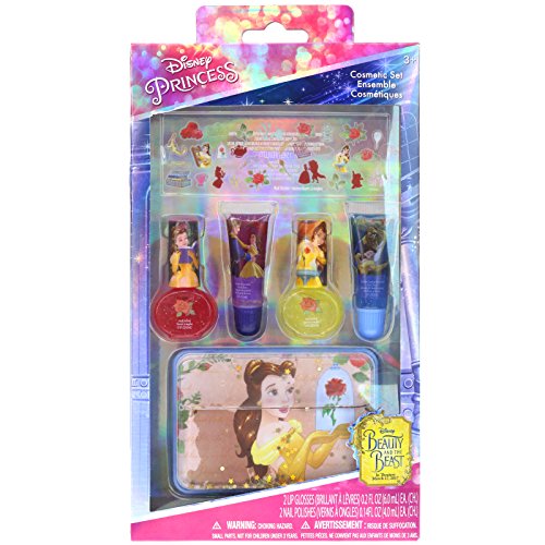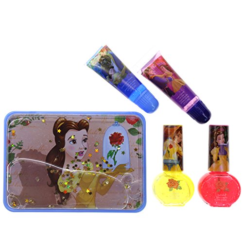 Townley Girl Disney Beauty and the Beast Kiss it Paint it Lip Gloss and Nail Polish Set with Glittery Makeup Case
