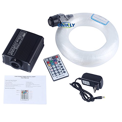 CHINLY 16W Remote RGBW fiber optic curtain light 300pcs 1.0mm flash point 9.8ft waterfall sensory light kit