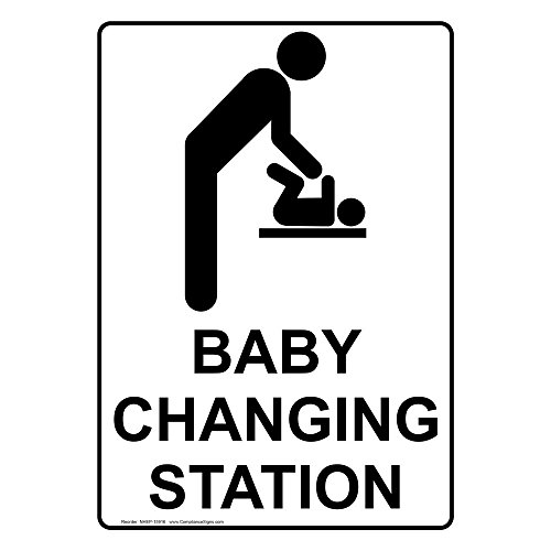 -. Title : ComplianceSigns Vertical Vinyl Baby Changing Station Labels, 5 x 3.50 in. with English Text and Symbols, White, pack of 4