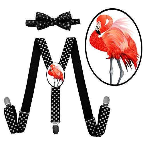 (QZ-Lee)/Accessories/Suspenders Cummerbunds/DIRECT FROM USA/QZ-Lee Flamingo Suspender Bow Tie/Unisex Suspender/Adjustable Suspender/Y-Back Suspender