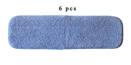 6-pack of 18"x5" Blue Microfiber Mop Pads for Bona, Ocedar, libman, Rubbermaid Velcro Mopheads by AI-Vacuum