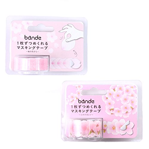 Bande Masking Tape Flowers Stickers bundle of 1 Sakura Petals Stickers (BDA251) and 1 Yoshino Cherry Stickers (BDA252) Bande Tape, with a Message Card, Sakura &Yoshino Cherry