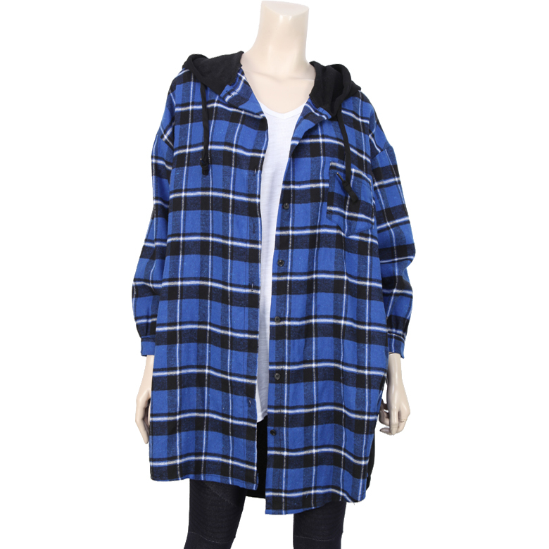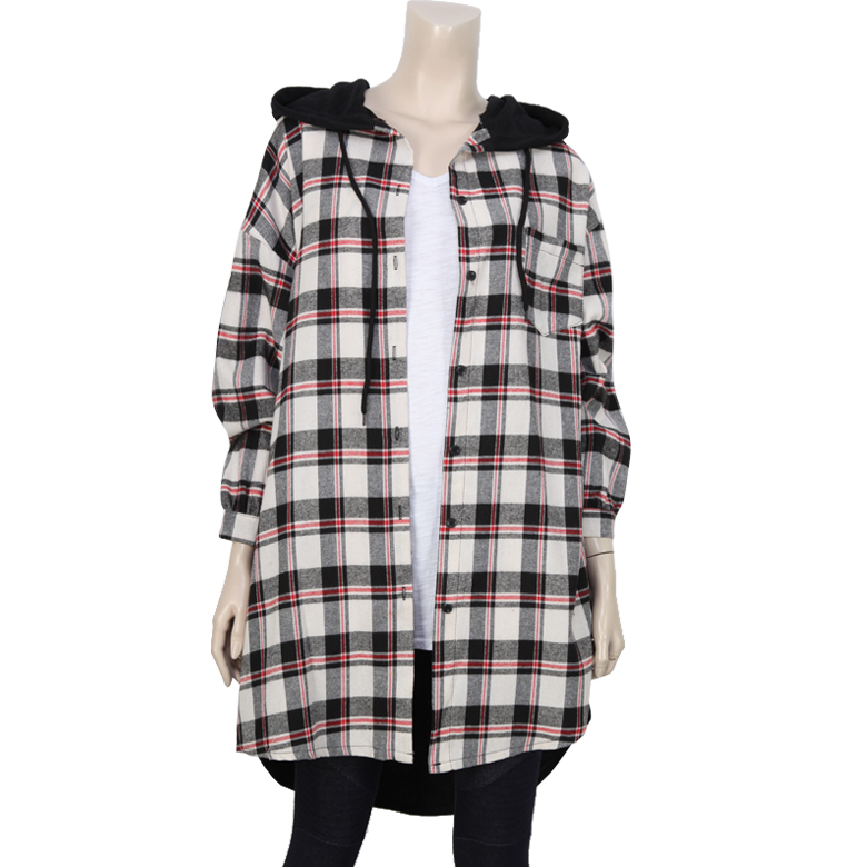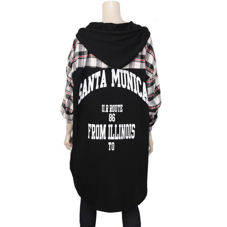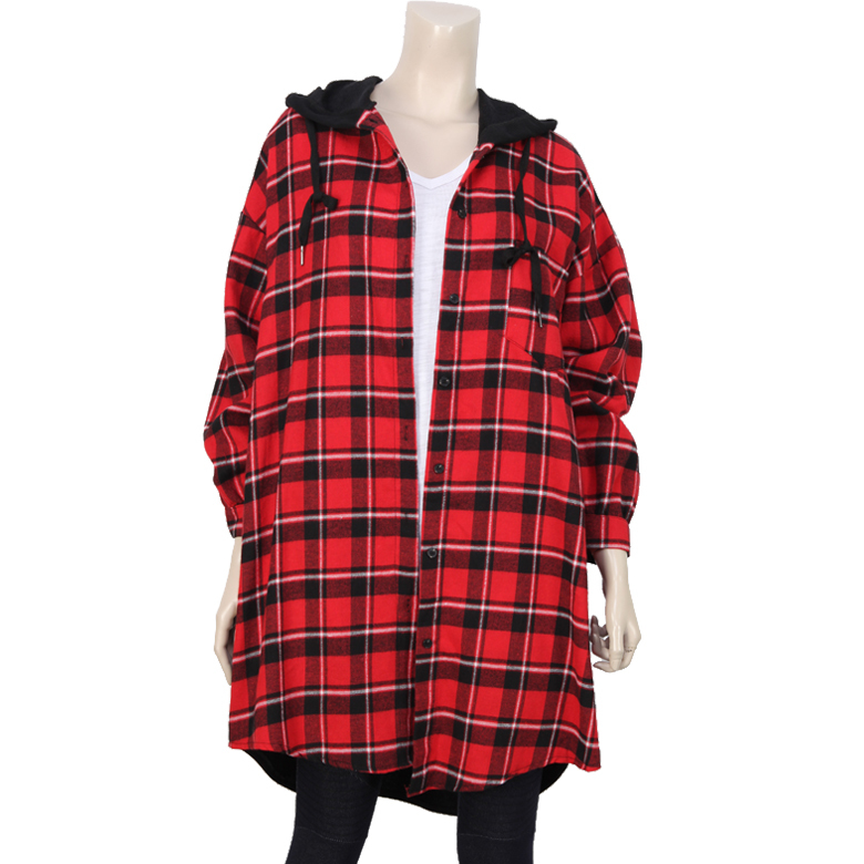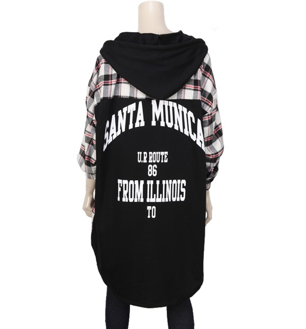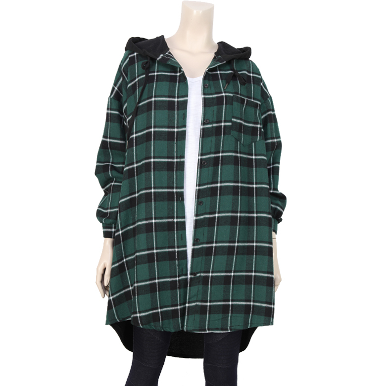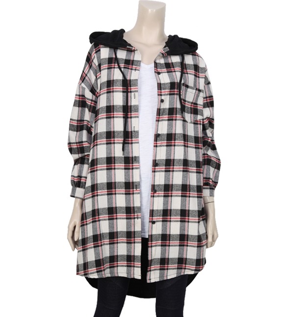 점퍼 스타일의 롱 체크후두 입니다