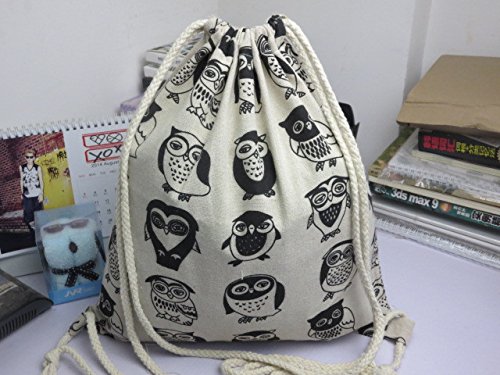 Canvas Drawstring Bag, Gym Sackpack Owl Original Bag Print Drawstring Backpack Shoulder Bags Gym Bag for Men and Women,15 x 13 inch