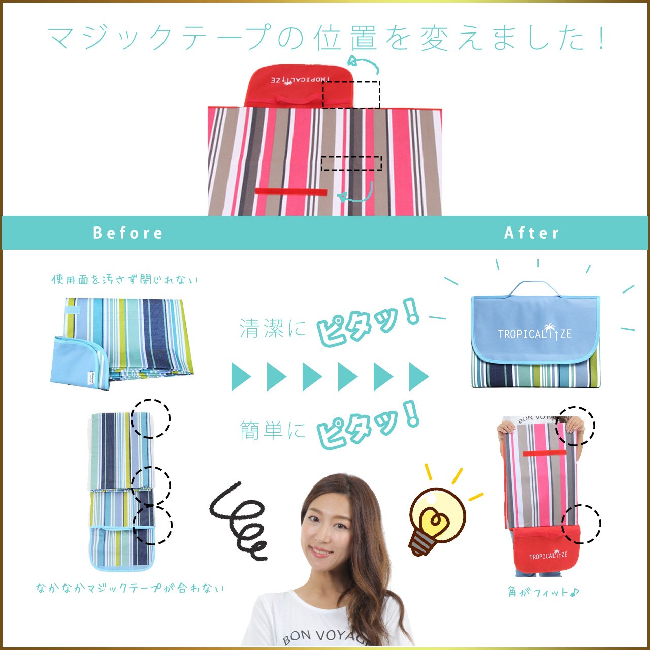 Based on customer reviews, we were able to redesign the position and cover of the Velcro, and it was able to meet your request!