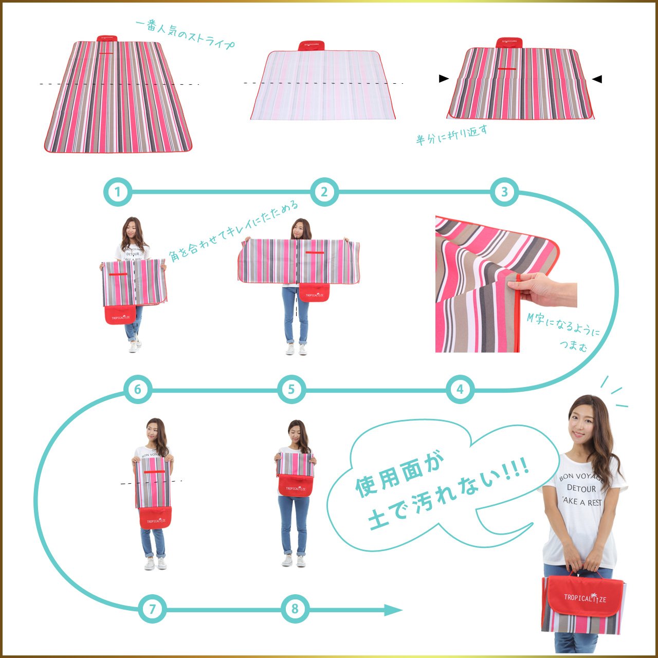 After enjoying leisure, such as athletic meetings, camping and so on, fold the used side without polluting!