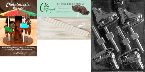 Cybrtrayd 'Ice Skates Lolly' Sports Chocolate Candy Mold with 25 4.5-Inch Lollipop Sticks and Chocolatier's Guide