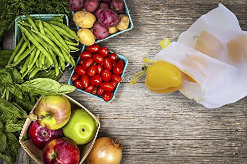 Reusable Produce Bags - Premium Washable BahrEco Mesh Bags for Grocery Shopping & Storage of Fruit Vegetable & Garden Produce - Eco Friendly Net Bags