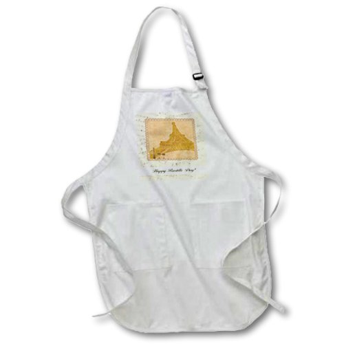 3dRose Eiffel Towel, Wine Glasseseasonss and Bottle on Music Notes, Happy Bastille Day-Full Length Apron, Black, with Pockets (apr_154897_4), 22 by 30"