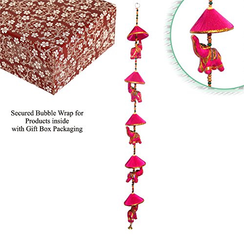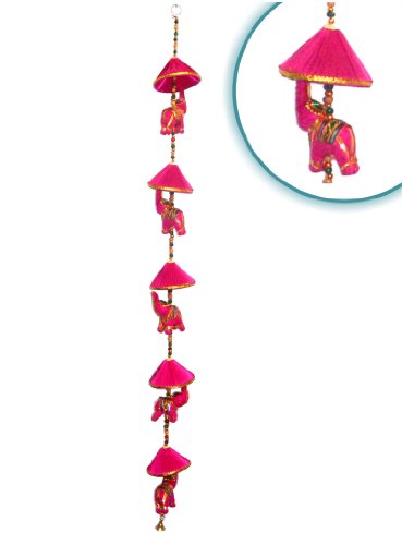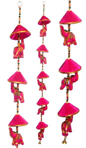 -. Binding : Kitchen -. Brand : Super India -. Color : Pink -. EAN : 8903605041169 -. Feature : **IMPORTANT NOTE** - The images and page information for this product have been created by 'Super India Store'. You will get exactly what you see only if you order from Super India Store. / **FREE Gift Box Packaging worth $1.99 as shown in image with secured "Bubble Wrap" for Product inside. / **PLEASE CONFIRM** Original Seller "Sold by Super India Store' and Fulfilled by Amazon" before you add it to the cart. Genuine Super India Store. product - beware of imitations! A quality decorative hanging by Super India Store Inc. / The string hanging elephant is made of stuffed cotton cloth. The elephant is decorated with zari gota work with a multi vibrant head flower. It is entirely handmade by expert craftsmen. / It has multicolored beads and small brass bell at the bottom. The satin used for small umbrella is all around covered with zari. -. IsAutographed : 0 -. Label : Super India Store -. Manufacturer : Super India Store -. ProductGroup : Home -. ProductTypeName : HOME -. Publisher : Super India Store -. Studio : Super India Store -. Title : Wall Hanging Decorative Cotton Elephant & Circlet Stringed with Color Beads and Brass Bell FUCHSIA
