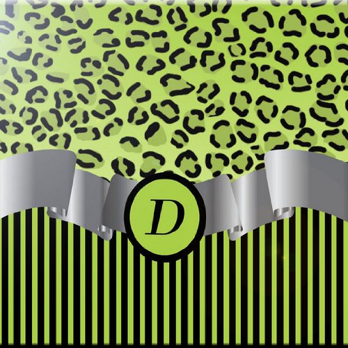 Rikki Knight RK-8intilec-2285 8" X 8" Letter "D" Lime Green Leopard Print Stripes Monogram Design Ceramic Art Tile
