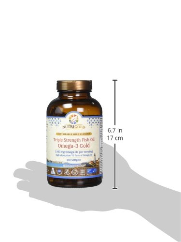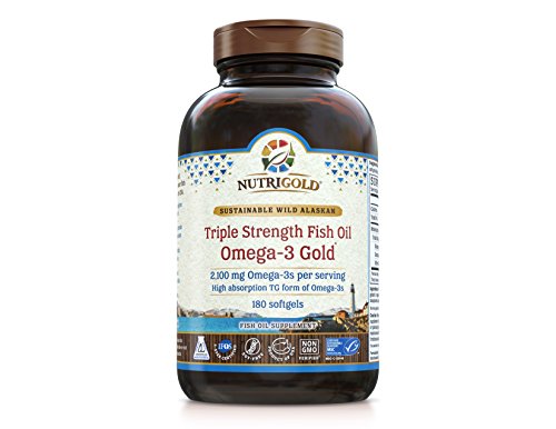 Nutrigold Triple Strength Omega-3 Gold Fish Oil Supplement, 2100 mg, 180 Softgels