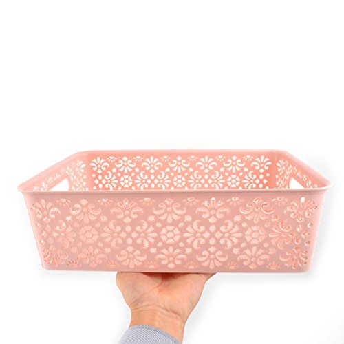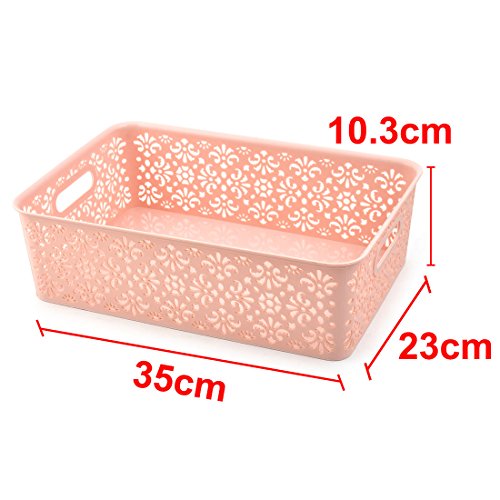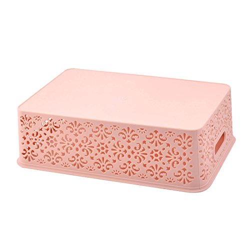 uxcell Plastic Home Rectangle Hollow Out Makeup Sundries Storage Box Basket Light Pink