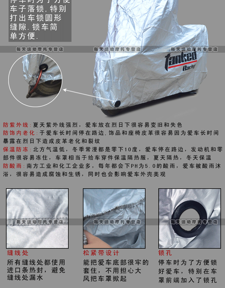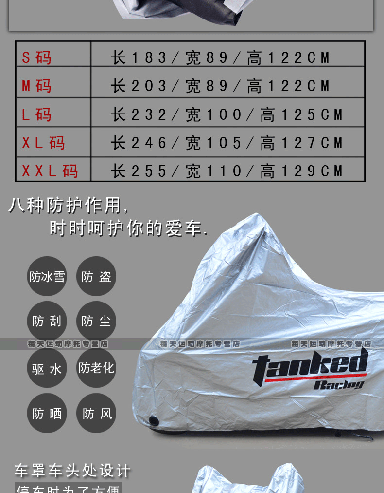 XXL (length 255 * wide 110 * high 129) CM (such as BMW 1200 and other large motorcycles)
