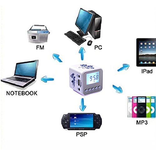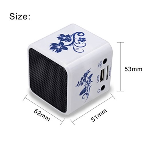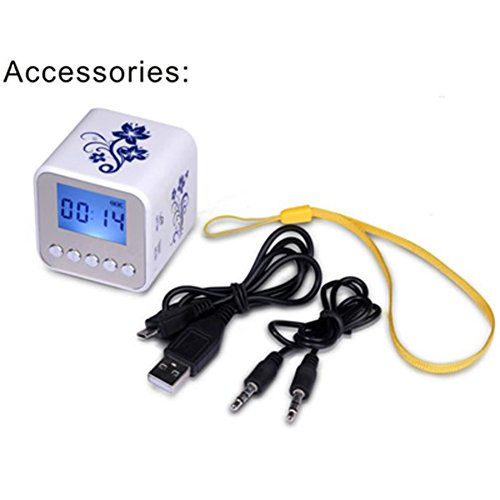 Haoponer Portable Mini Digital Display Screen Speaker USB Flash Drive Micro SD/TF Card Music MP3 Player FM Radio Blue and white porcelain plastic White/Blue-1