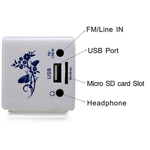 Fashion design, cute lovely shell pictures mixing the effect of electroplating highlight high-end quality. Powerful sound, compact and easy to carry. With radio functions, can be played in MP3 format, small subwoofer style