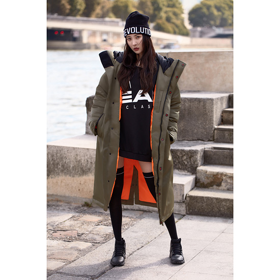 - 무릎 아래의 롱기장으과 이중 구조의 일체형 후드로 바람에 보호되는