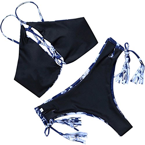 Feature : Material : Polyester, Soft and Breathable With Good Elastic. / Women's 2 Pcs Bikini Top Vintage Bottom Swimwear Swim Suit. / Size: S-XL, Color?black. Please Check our Size Chart in Pic before purchase. / Perfect for beach, pool, party,casual,vacation,swimming / Pretid Apparel with registered trademark.