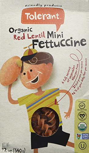 -. Feature : Tolerant / Tolerant Organic Red Lentil Mini Fettuccine 12 oz (340 grams) Box / Gluten Free, Vegan, Vegetarian, Organic, Non-GMO