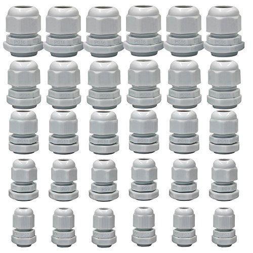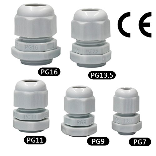 MoMaek Plastic Waterproof Adjustable 3.5 - 14mm Cable Glands Joints Cable Gland, PG7, PG9, PG11, PG13.5, PG16, Pack of 30