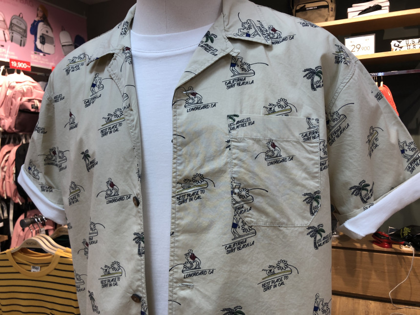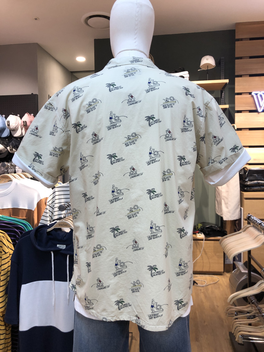 전판에 들어가는 서퍼 문양이 포인트인 반팔 셔츠입니다~