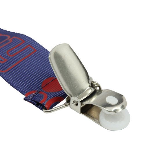 -. Feature : Officially licensed / Team color and graphic / Works with all pacifier types / Metal fastener provides firm grip / Pacifier not included