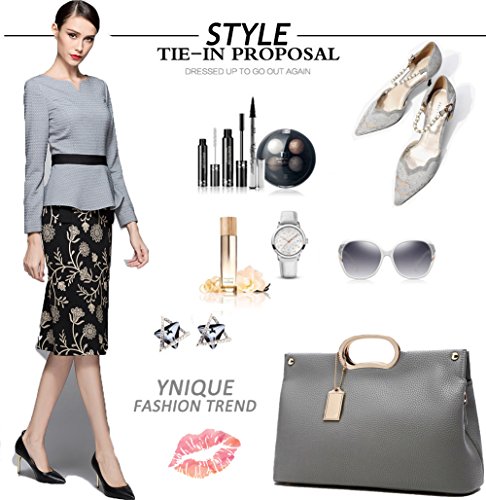 -. Brand : YNIQUE -. Department : womens -. Feature : MATERIAL: High Quality PU Leather / CLOSURE: Top Zipper Closure / DIMENSIONS: 13.4"W x 9"H x 4.7"D / POCKETS: 1 Exterior Back Zipper Pocket,2 Interior Zipper Pocket and 2 Front Wall Open Top Item Pockets / FEATURES: Gold-tone Hardware, Zip-pockets in Middle and Back, Detachable Shoulder Strap and Top-zipper Closure -. ProductGroup : Shoes -. ProductTypeName : HANDBAG -. Title : YNIQUE Women Top Handle Satchel Handbags Tote Purse Elegant Clutch Bag