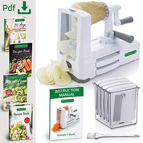 Spiralizer 7-blade Vegetable Slicersの機能と品質は、ここ数年で大幅に向上しました。私達は私達の顧客の提案に耳を傾け、私達の長年の経験と共に彼らのニーズを考慮に入れ、そしてこれら全てを一つの非常に改良された製品にまとめました。 Spiralizerは市場で最高のスパイラル化装置であり、多くの改良と新機能を備えた最先端の技術と材料のみを使用していると私たちは誇りに思っています。使用、清掃、保管がこれまでになく簡単になりました。今もこれまで以上に安全に使用できます。