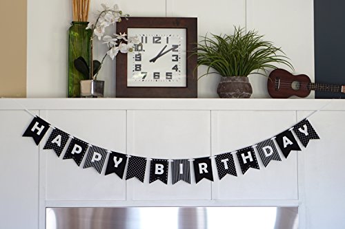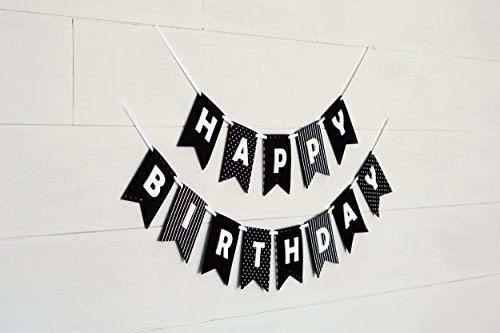-. Title : Happy Birthday Banner Bunting Laser Cut Felt 60 inches wide - Black & White