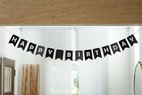 -. Feature : Made from durable, sturdy felt / 60 inches total width / Classy Black & White / Perfect decor for any Birthday Party!