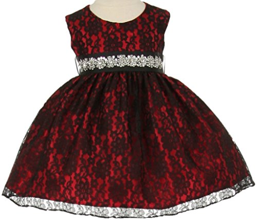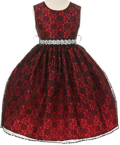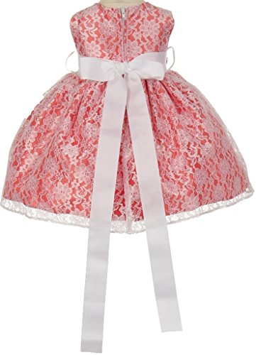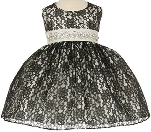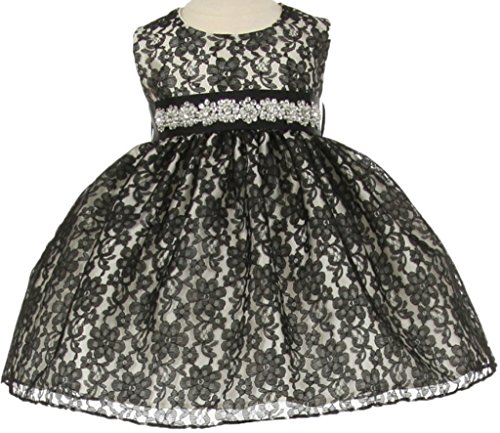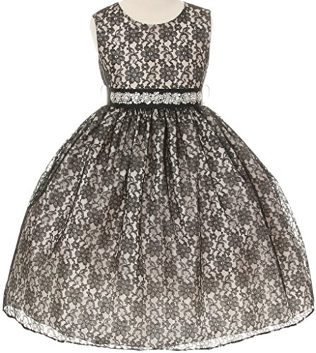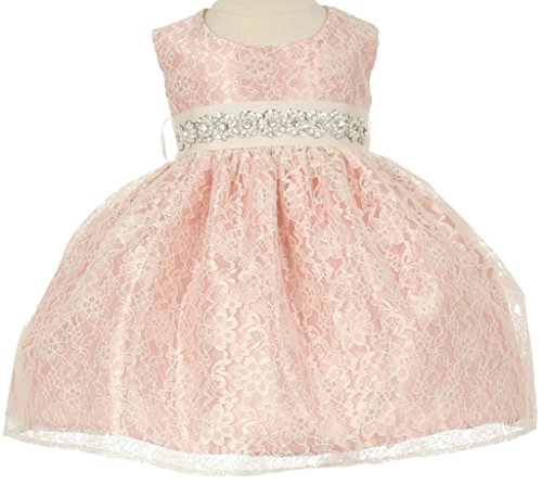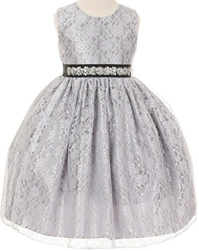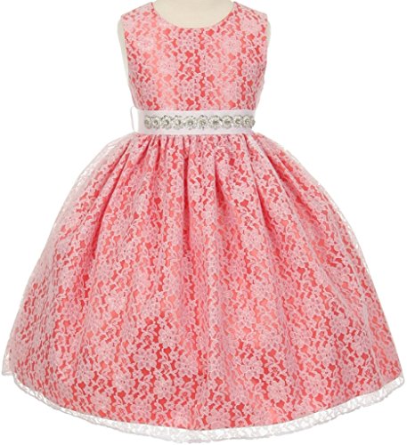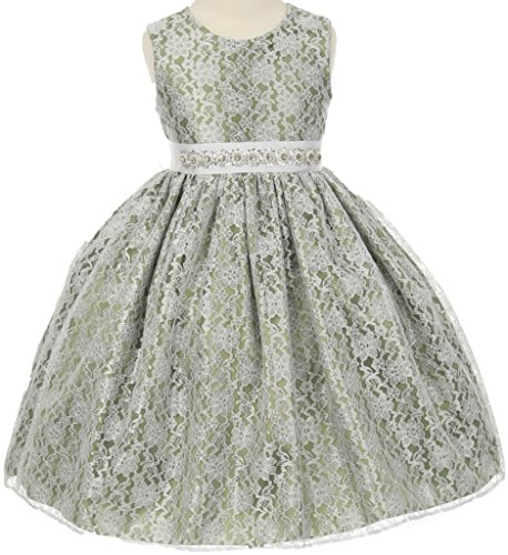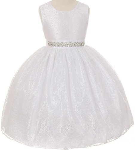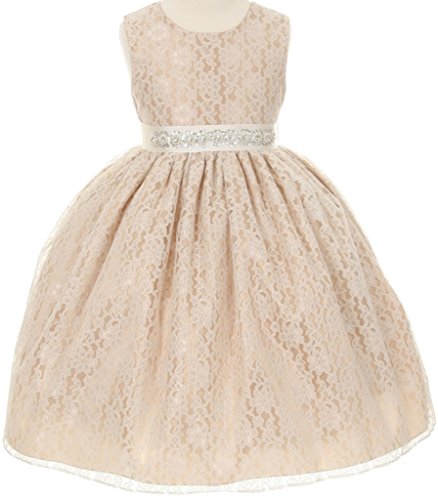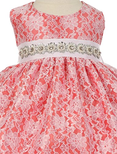 Elegant two tone lace dress with a beautiful dazzling pearl sequin rhinestone ribbon sash. Skirt has the perfect amount of fullness. An absolutely gorgeous special occasion dress for your little girl. This dress is perfect for birthday parties, fomal events, religious occasions, holidays and more. Comes in girl sizes and baby sizes.Feature