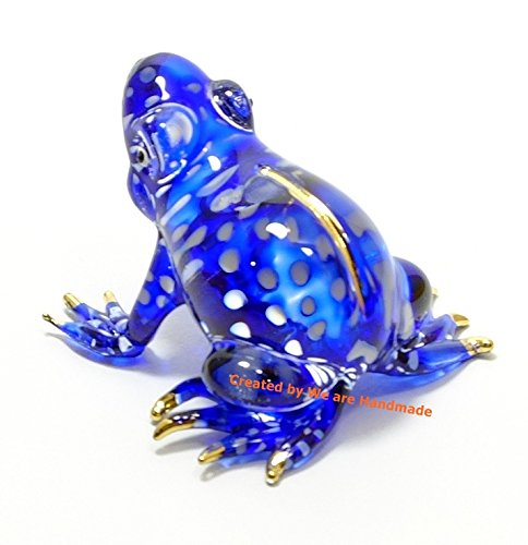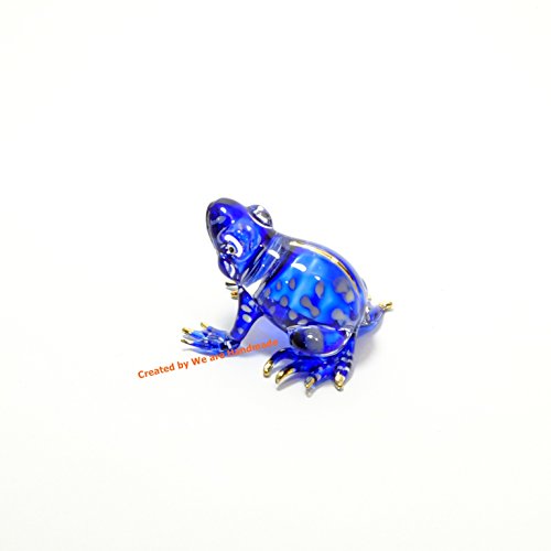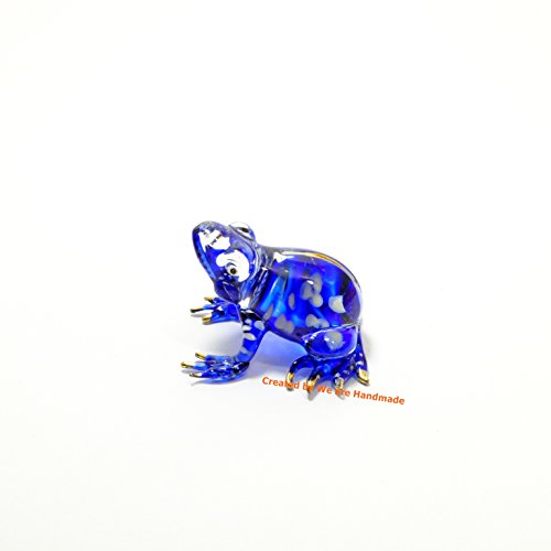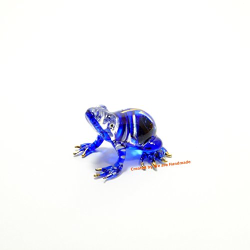 Handmade Mini Blue Frog Art Glass Blown Reptiles Animal Figurine No.5 - Collection Y2016