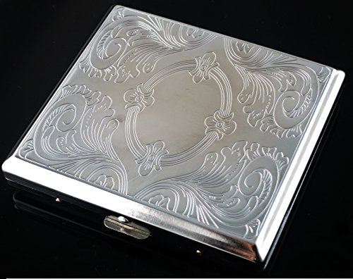 Title : New Etched Metal Cigarette Case Box Holder Holds 20 Cigarettes Silver(SM132)