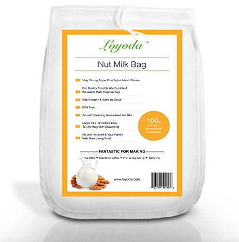 There are a multitude of other ways you can use your nut milk bag. It truly is a versatile kitchen tool and a handy helper. It is fantastic for making raw juicing drinks: Organic almond milk, soy milk, cashew nut milk, homemade yoghurt, kefir, coconut milk, rice milk, vegetable juices, hemp milk, flax milk. Great as a cold brew coffee filter, jam or jelly straining and as a stock filter. You can also use this Loyoda bag for sprouting seeds and nuts. Use your blender such as vitamix to blend up your almonds or veg and strain with our nut milk bag. Enjoy the result yourself and share with your loved ones.