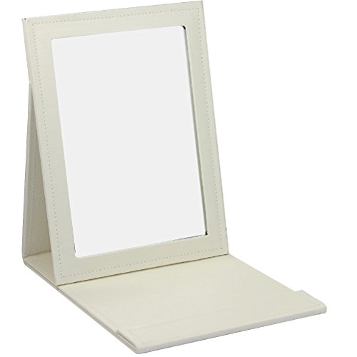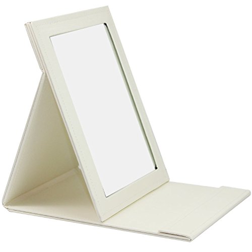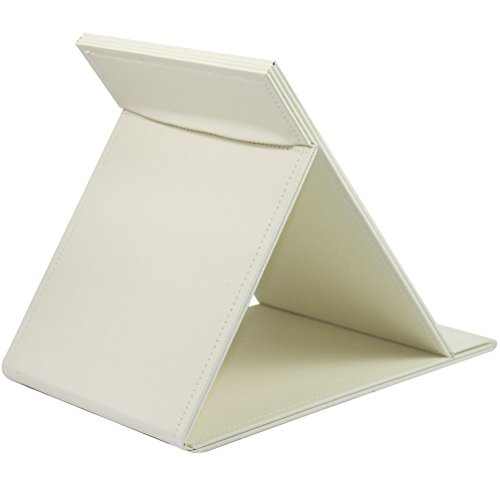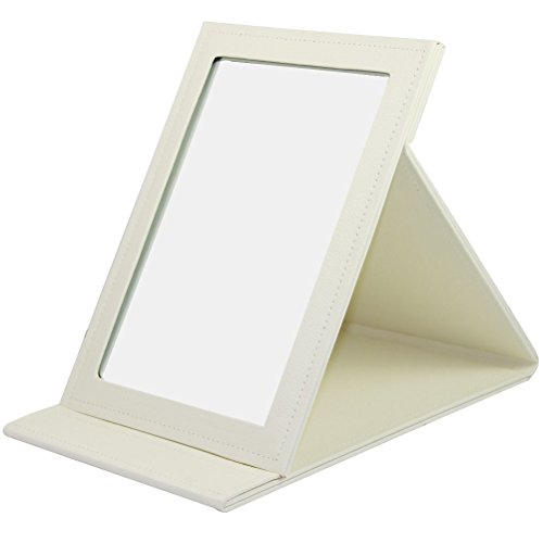 Youngman Leather Travel Portable Foldable Mirror Makeup Mirror with Adjustable Stand (White)