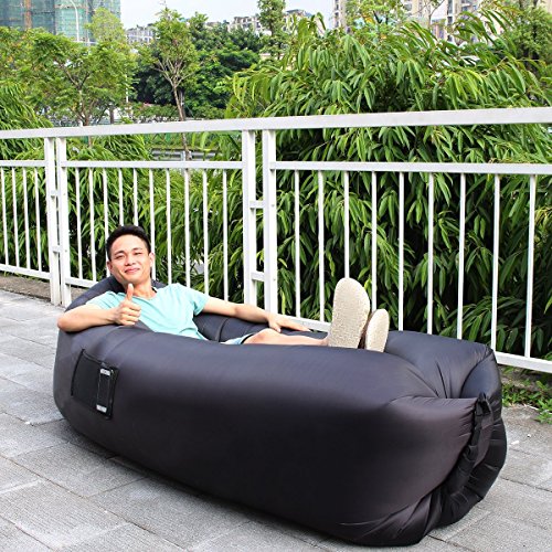 COMPACT & PORTABLE: Once it is deflated, the lounger is very compact & lightweight making it super easy to carry. Additionally, we have included a bag to assist you in transporting your lounger wherever you go. As a result, the inflatable bed is the perfect buddy for all your outdoor activities such as travelling, festivals, beach trips, hanging out in the park and much more.