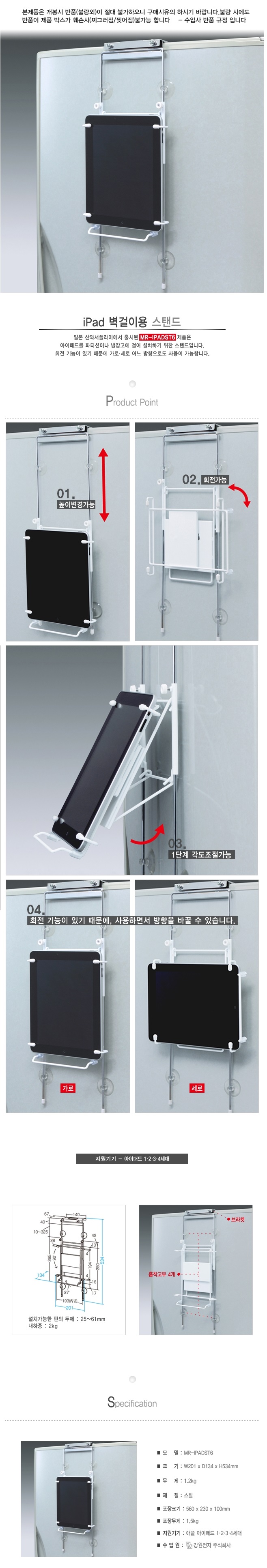 IPad 1, 2, 3, 4 rotatably generation changes wall