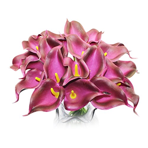 Decora Purple Latex Real Touch Lovely Artificial Calla Red and Yellow Lily Wedding Bouquet Flower Bouquets 10 PCS