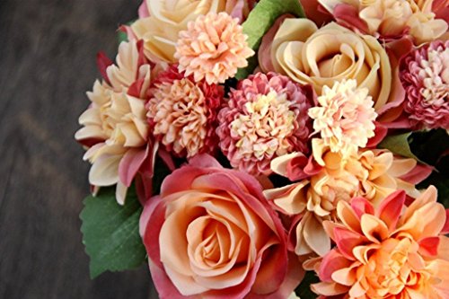 Silk Flower Artificial Rose Dahlia Daisy Flower Bouquet Bride Wedding Holding Flowers For Home Hotel Party Garden Art Decor 8 Pcs (Red&Orange)