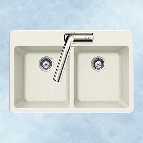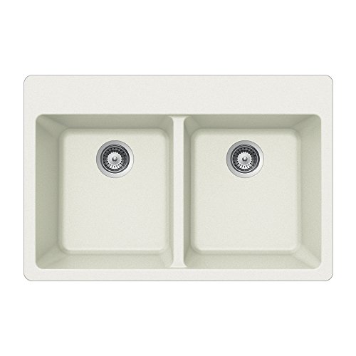 Houzer M-200 CLOUD Quartztone Series Granite Top Mount 50/50 Double Bowl Kitchen Sink, White