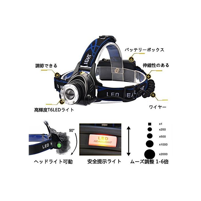 【다기능】3점등 점등 모드(강하다-약-점멸)고, 줌 기능(문 렌즈 설계) 고, 90°의 각도 조정 가능,헤드 밴드의 장단을 조절 할 수 있는,안전 제시 라이트.(18650 전연못이 별매입니다)