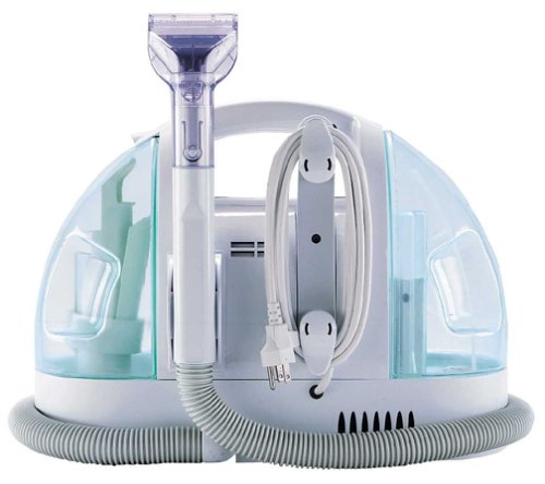Amazon.com Designed for surface or ground-in dirt, the Bissell Little Green ProHeat multipurpose cleaner uses hot water and a cleaning agent to remove stains from upholstery, carpet, car seats, and more. A compact and efficient unit, the 9 amp Little Green disperses and sucks up cleaning solution in one swipe of the nozzle. Shampoo and clean water are stored in individual compartments, while the dirty-water recovery tank is completely separate. Bissell's built-in heater (optional during use) keeps hot water heated for maximum cleaning power. The unit features a built-in 5-1/2-foot hose with a solution trigger and a tough-stain tool for stubborn spots. The hose wraps around the base when not in use, and the 20-foot power cord stores on quick-release side hooks. The 48-ounce tanks are easy to remove, fill, and replace, and the machine can be stored ready to use. Bissell includes a one-year warranty and an 8-ounce bottle of cleaning solution to get you started. --Emily Bedard 0