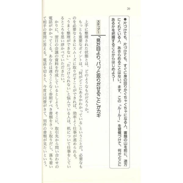 【商品説明】 定価(税込み):778円 値引き:5% OFF 目次:ルール1 デスク・引き出し・キャビネットの収納/ルール2 トレーの分類・ファイルの整理/ルール3 出社時、終業時の管理・点検/ルール4 処分するか否かの判断法/ルール5 情報のノート化・ビジュアル化/ルール6 メモの処理・カードの保存法/ルール7 データのファイル化・メールの管理 バーゲンブック 新品 特価 格安 ビジネス 経済 スキル 整理 収納 カード | |