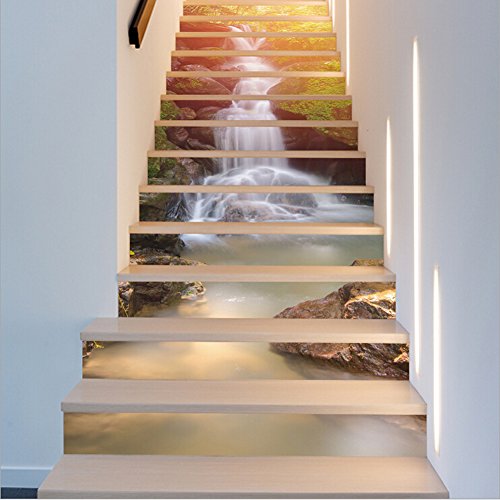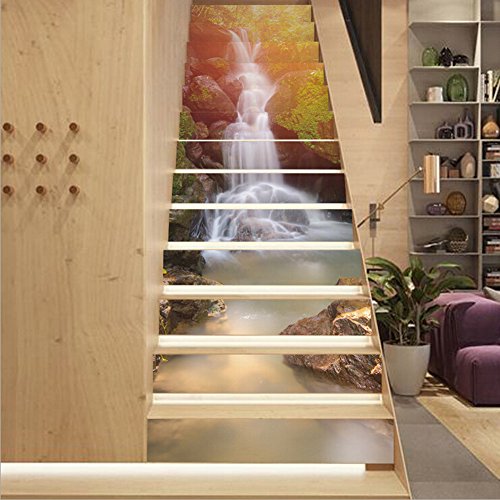 Fuloon Waterfall 3D Stair Sticker DIY Steps Sticker Wall Decal Mural Wallpaper Removable Decals for Home Decor (13Pcs, Waterfall)