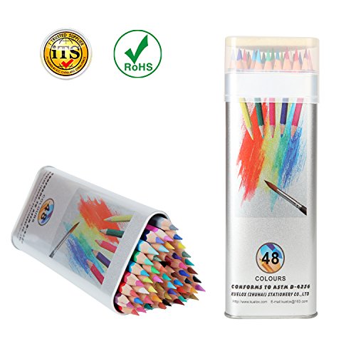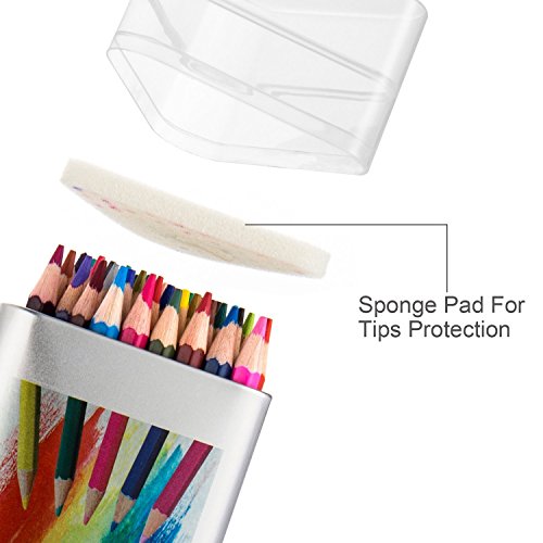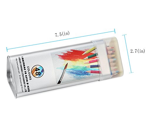 49 PRE-SHARPENED COLORED PENCILS:A color code map on the tin box for reference,each pencil comes color coded for easy identification,then you can easily find the proper colored pencil.The pencil is excellent for dry and wet artistic creations.Shade them on dry paper and apply a water wash or use water brush/cotton bud to get a watercolor look with unique blending effects.