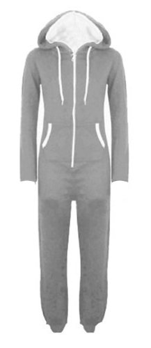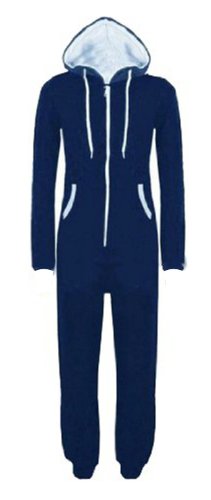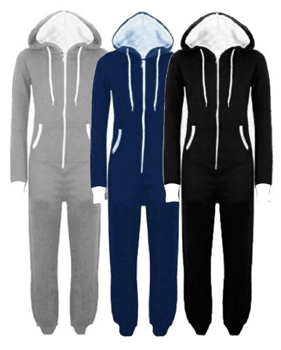 Plain coloured zip up onesie, with long cuffed sleeves and cuffed ankles, two side pockets and hood